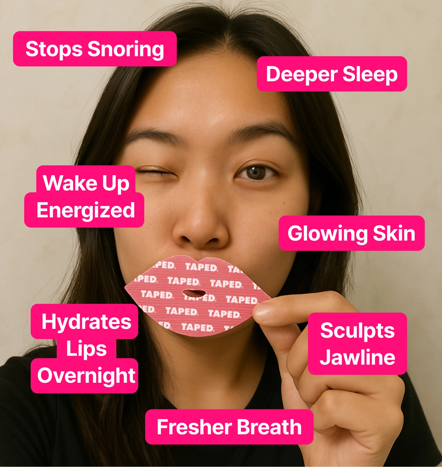 Why rely on sleep aids, jawline trainers, or expensive skincare when one infused strip does it all? TAPED delivers deeper sleep, skin hydration, and jawline definition in one step—powered by collagen, CoQ10, and essential vitamins. No pills. No effort. Just results overnight.